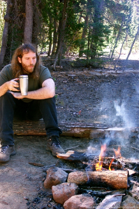 ken watching the breakfast fire die down. gone is the fear, stillness, and elemental beauty from last night, and you can almost feel the tension of breaking down, packing up, and moving on that awaits us. Crater Lake, OR | |