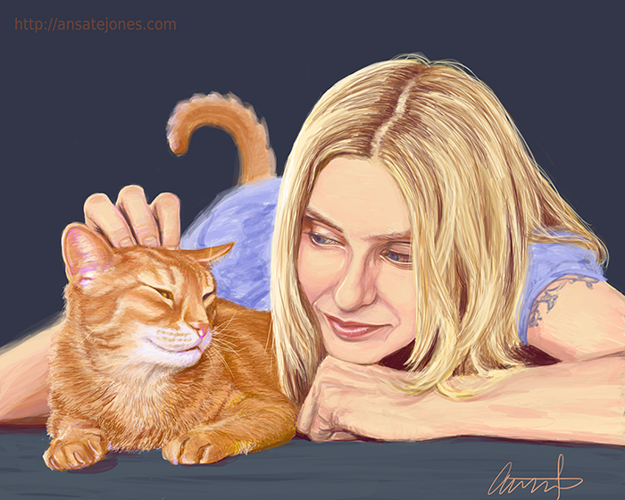 When Aimee Mann posted about her cat passing, I knew I had to paint him for her. Here is Aimee and Roman in his prime (digital painting, photo reference courtesy of Dan Tuffs) | |