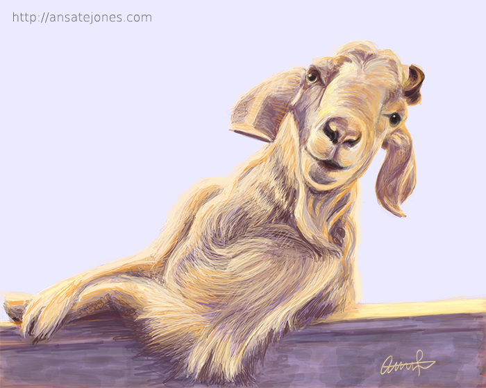 Charity piece portrait of Diablo the goat for Happily Ever Esther Farm Sanctuary (digital painting, photo reference provided by Happily Ever Esther Farm Sanctuary) | |