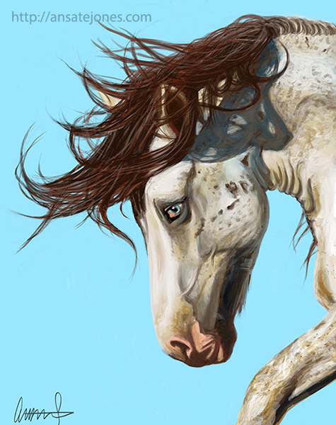 Charity piece portrait of Hail Chief for the Nokota Horse Conservancy. (digital painting, photo reference provided by Nokota Horse Conservancy) | |