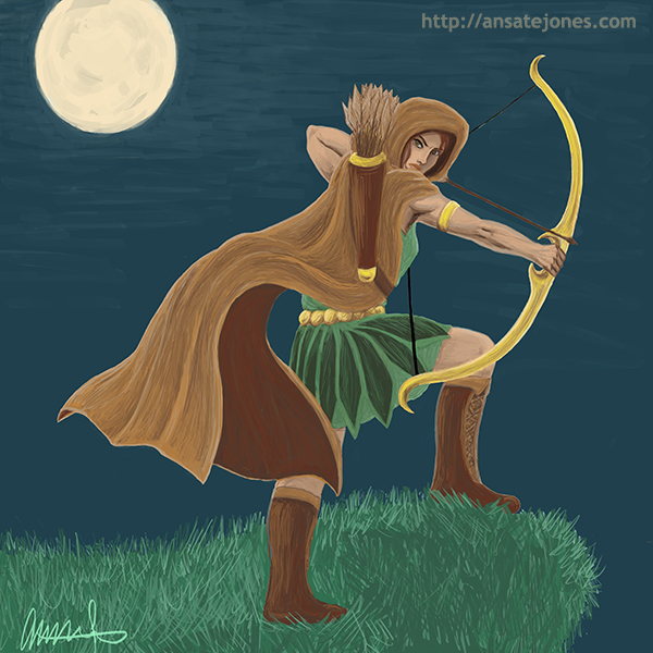 A Patreon challenge from two of my contributors. The two stipulations were 'woman warrior' and 'functional armor'. I decided to try redesigning the Greek goddess Artemis, since so many depictions of her basically have her barefoot in a tunic with a boob hanging out. | |