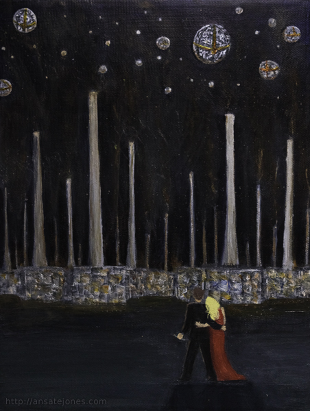 Something I painted for a Doctor Who art show in San Francisco in 2015. Everyone likes to depict the Doctor and his companions but I'm more of a Master girl, myself. Here he is with his wife, observing Utopia and the fall of humankind. Dream date. | |